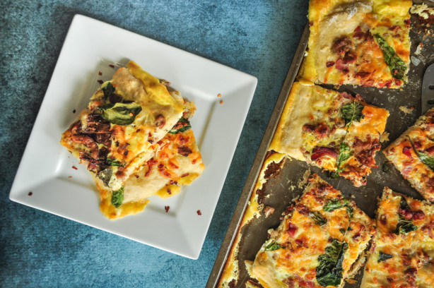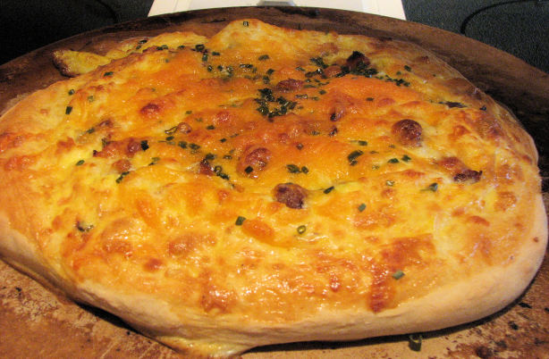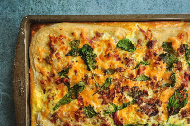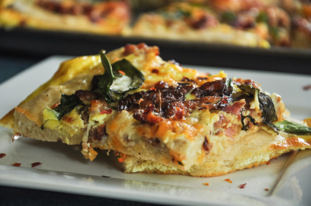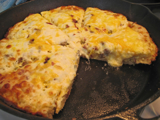 HANDS DOWN THE BEST PIZZA EVER!! THIS IS A MUST TRY RECIPE! I made my crust out of my bread machine. We had this Easter morning after church for brunch- and it is our new EVERY holiday breakfast by unanimous vote!!