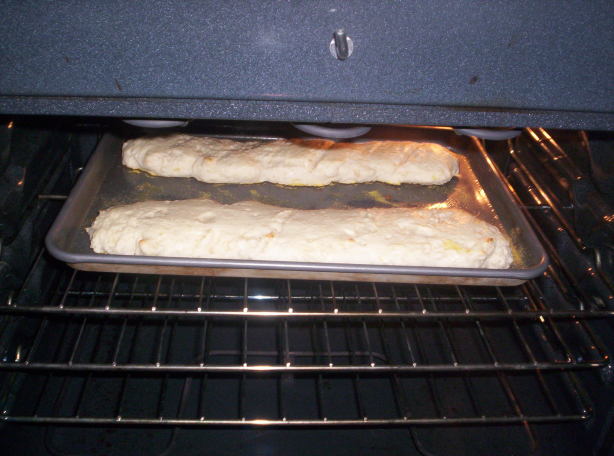 - To form loaves, spoon dough onto greased and cornmeal-dusted cookie sheets in two long French-loaf shapes or spoon into special French-bread pans.