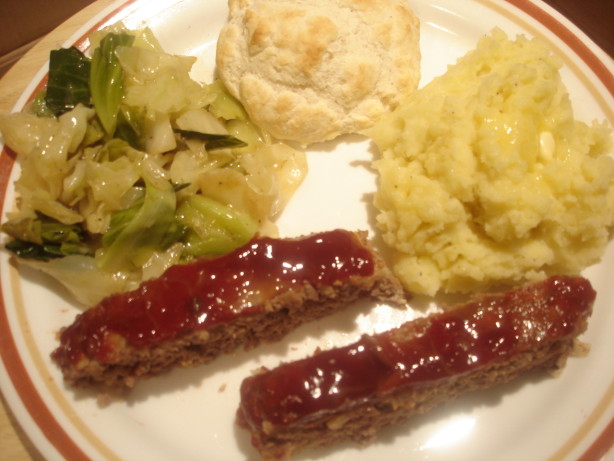 5 stars because it was easy to make and my very picky eaters liked it. After reading some of the reviews, I substituted the slice of bread with some stuffing (ground into crumbs with food processor) for more flavor. 1 slice of bread = 1/4 cup of crumbs. Also, the first time I made this, the sauce tasted very "vinegary" (my guys did not like it at all!), so the second time I made the sauce a couple of days in advance to let the flavors marry and some of the vinegar evaporate - much better (my picky eaters thought I used a different meatloaf recipe and I wasn't about to fess up). Reducing the amount of vinegar made the sauce taste too "ketchupy." Thank you for sharing!