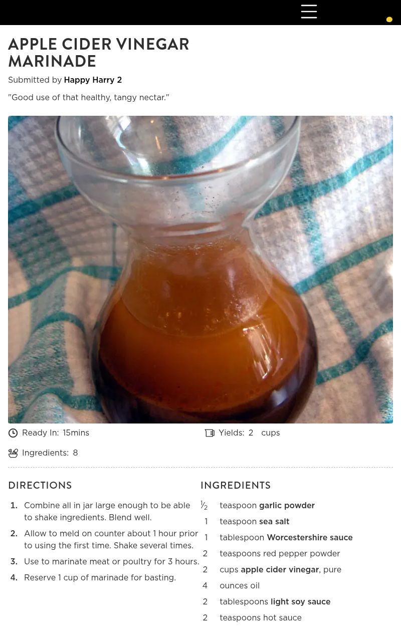 Like the taste of this marinade, but no amount of whisking or shaking would bring it together. I used it on our lamb chops today and to put it in the bag with the chops, I had to whisk with one hand and scoop it up with the other so that it was combined when I put it in the bag. It did a good job on the chops and left them with a very nice taste. It does make a lot and I will be using it on other things for a while. Thanks for sharing.