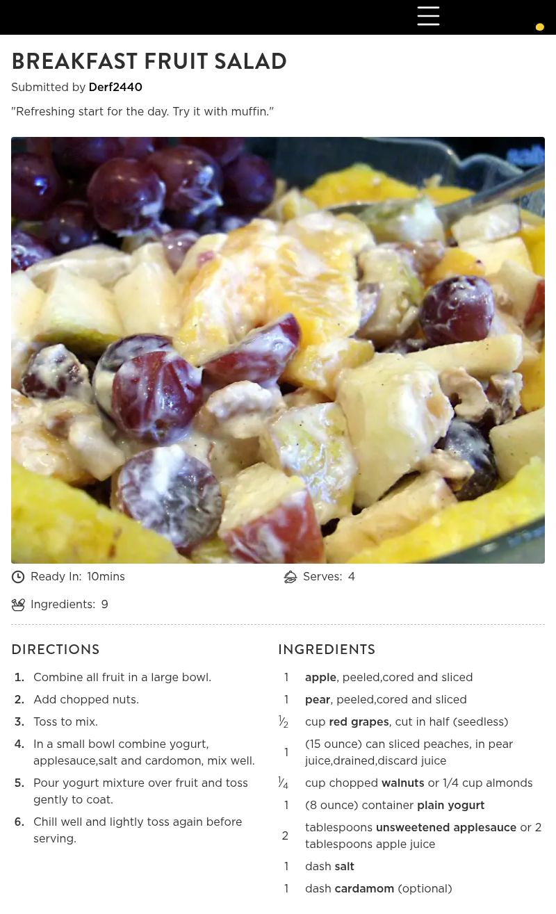 - In a small bowl combine yogurt, applesauce,salt and cardomon, mix well.