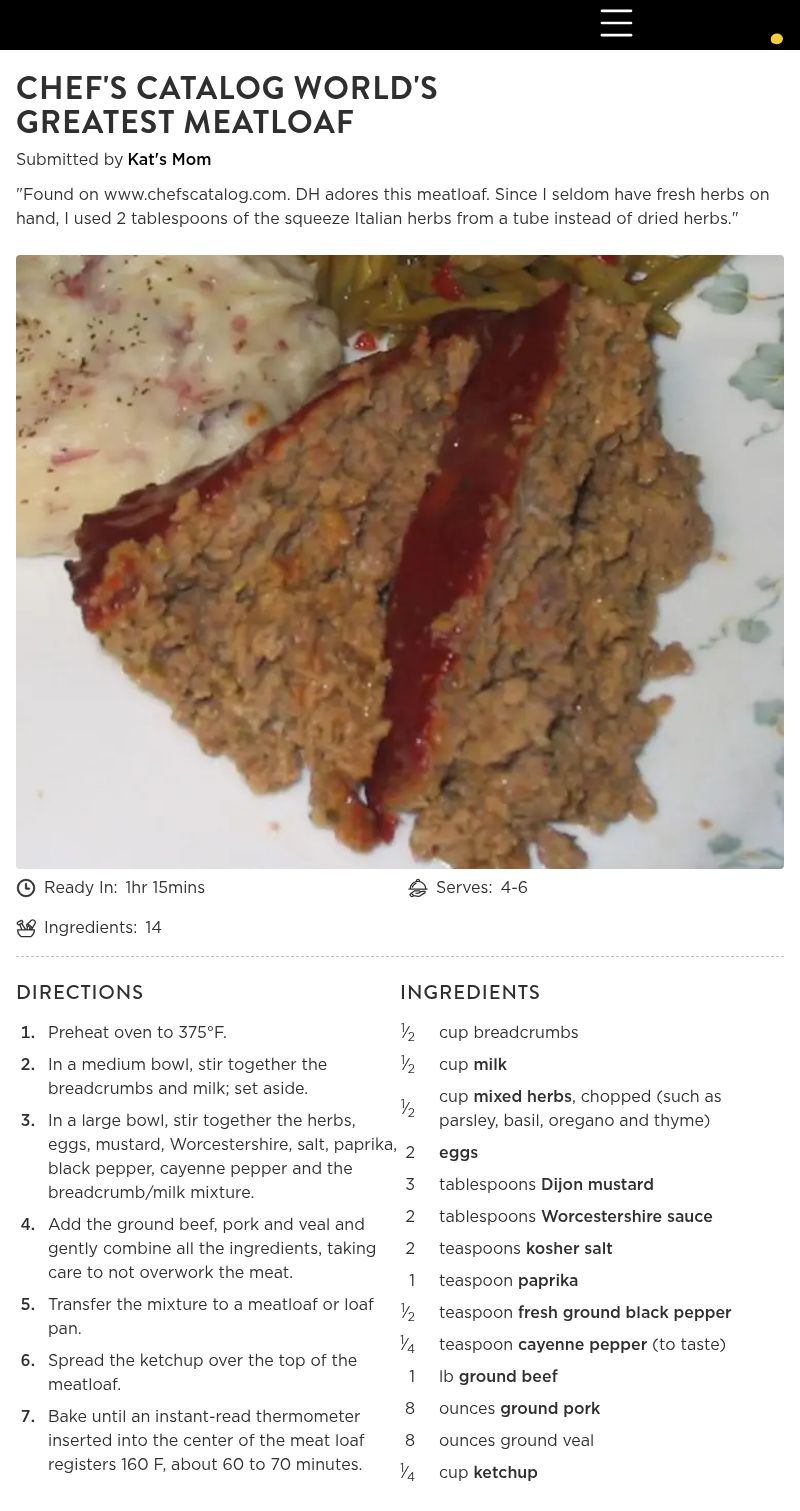- In a large bowl, stir together the herbs, eggs, mustard, Worcestershire, salt, paprika, black pepper, cayenne pepper and the breadcrumb/milk mixture.