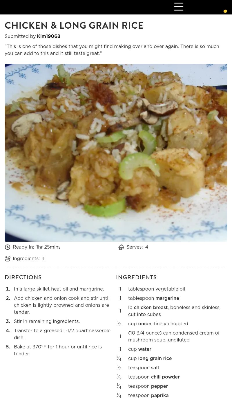 This is one of the best tasting chicken & rice dishes I've tasted. Very easy to put together. Everyone from young to old enjoyed this dish. This recipe is a keeper for me. The spices & onions were a perfect touch. Add a nice vegetable or salad to make a complete meal. Great for busy no fuss dinner nights!