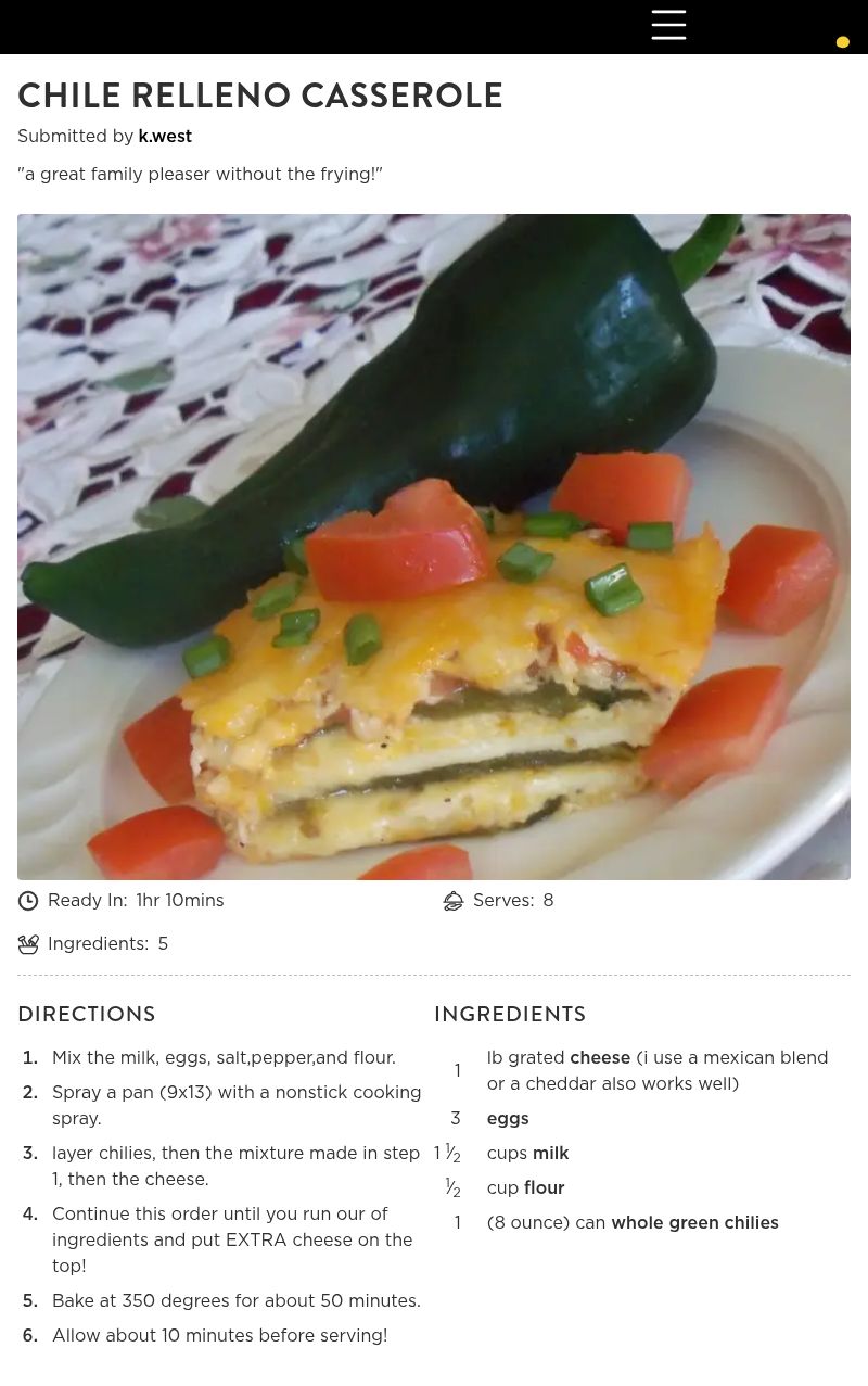 This casserole recipe is the best I have ever used. I made this with fresh roasted poblano chiles and got 3 layers into a 9x9 dish. Of course, the peppers are the star of any chile relleno and the batter was mild enough to let the peppers sing to me. This dish goes into my tried and true book. Thank you so much for sharing this stunning dish.