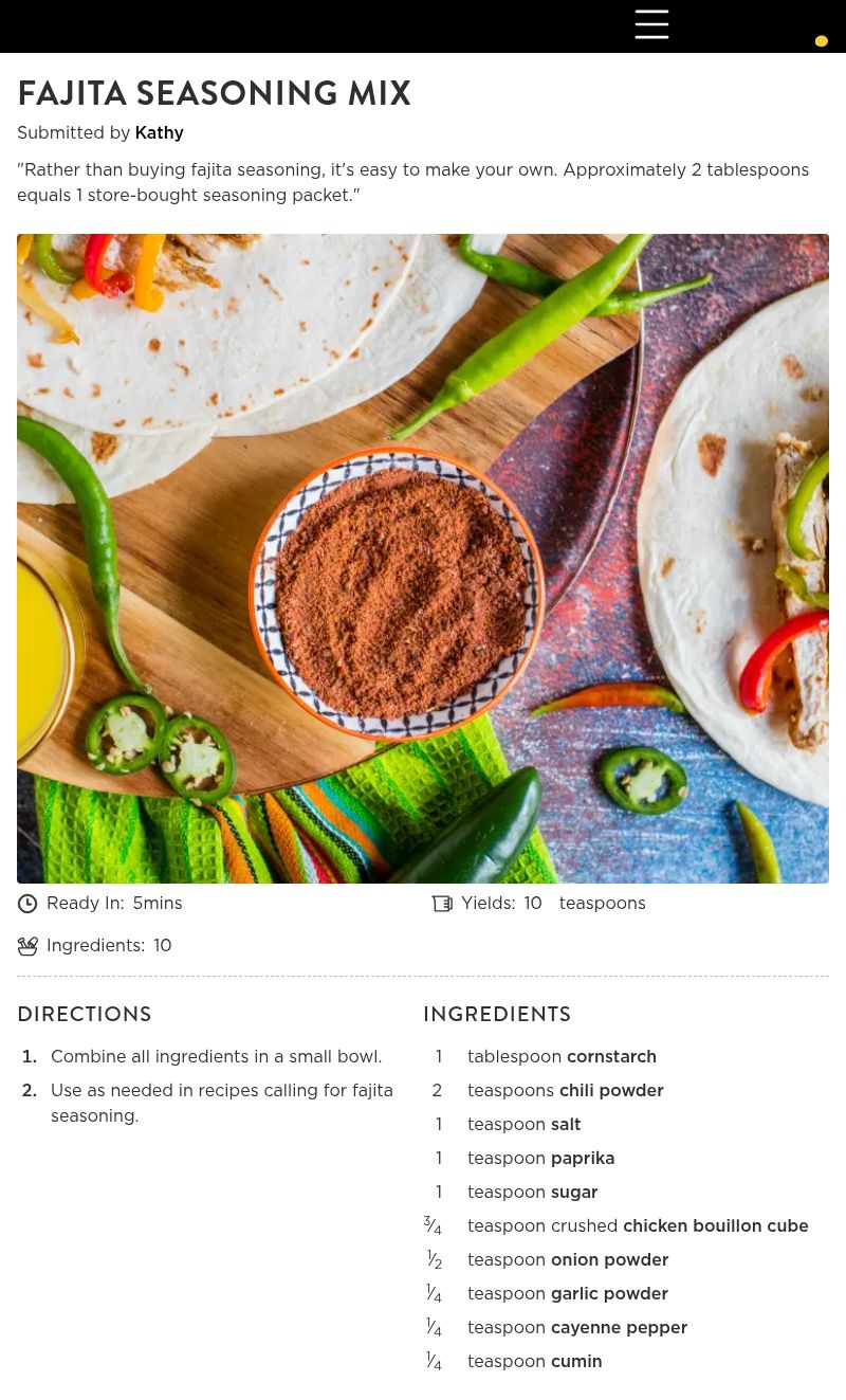 - Use as needed in recipes calling for fajita seasoning.