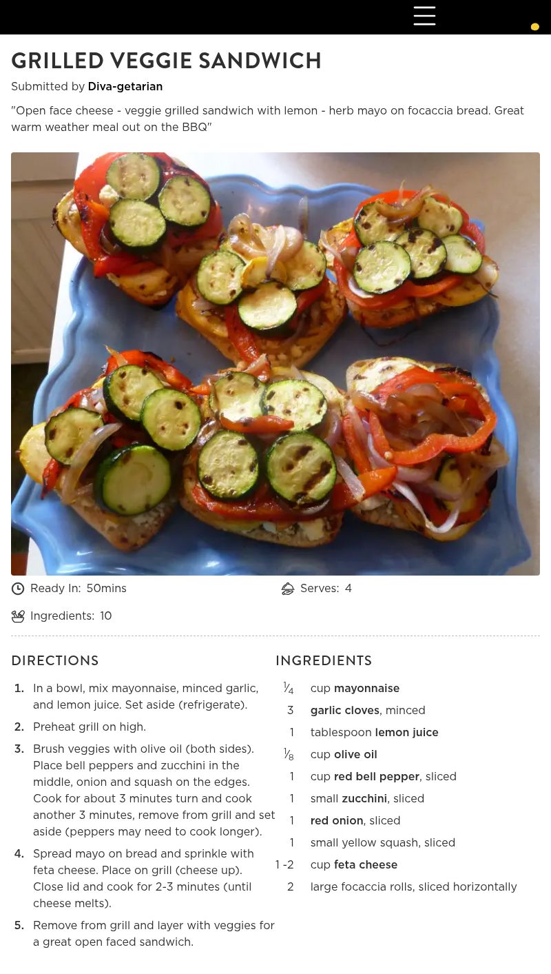 - Remove from grill and layer with veggies for a great open faced sandwich.