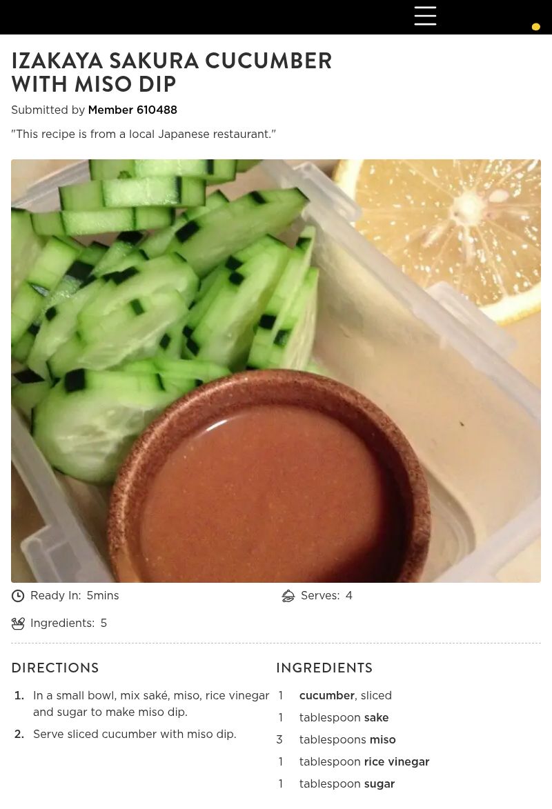 • In a small bowl, mix saké, miso, rice vinegar and sugar to make miso dip.