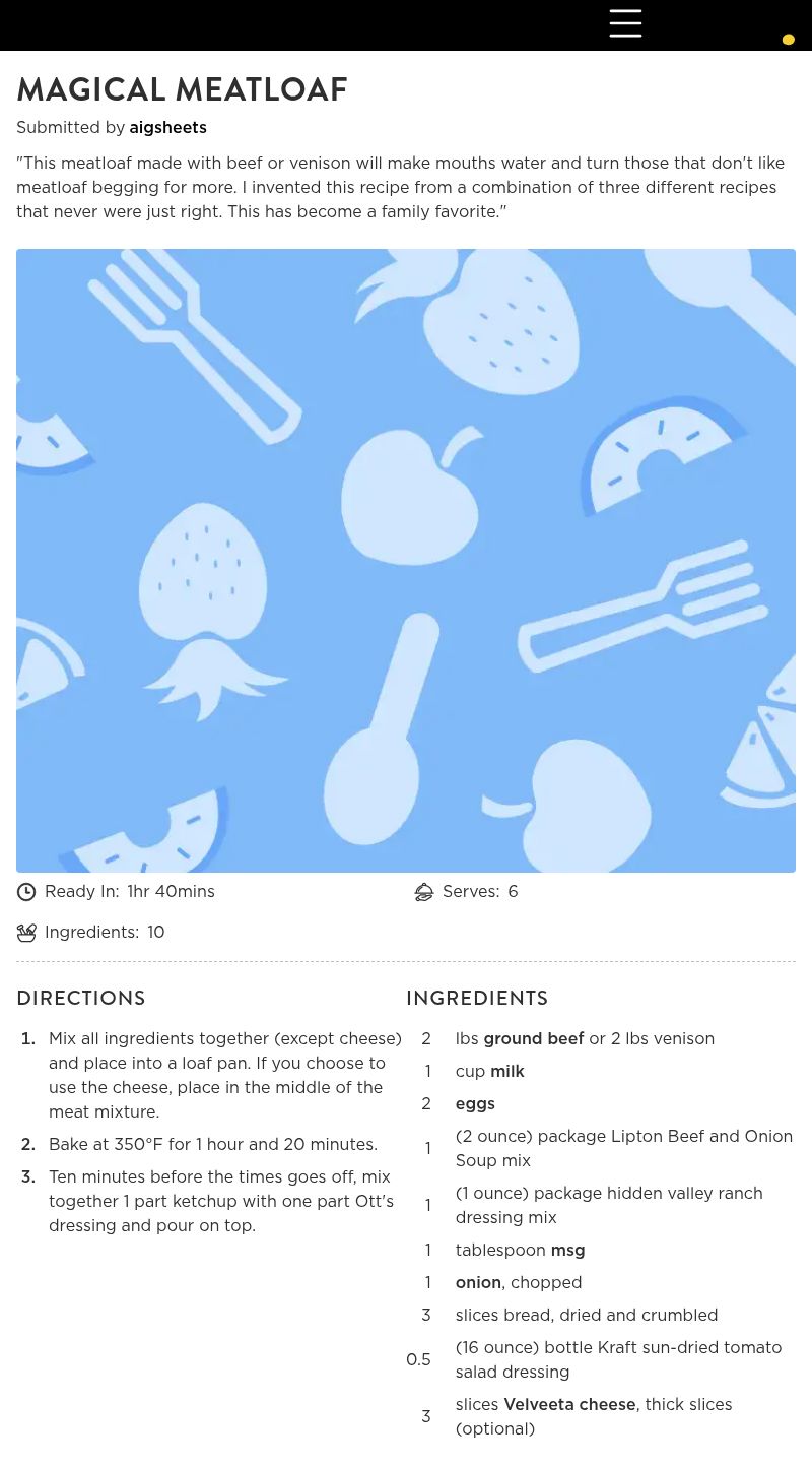 - Mix all ingredients together (except cheese) and place into a loaf pan. If you choose to use the cheese, place in the middle of the meat mixture.