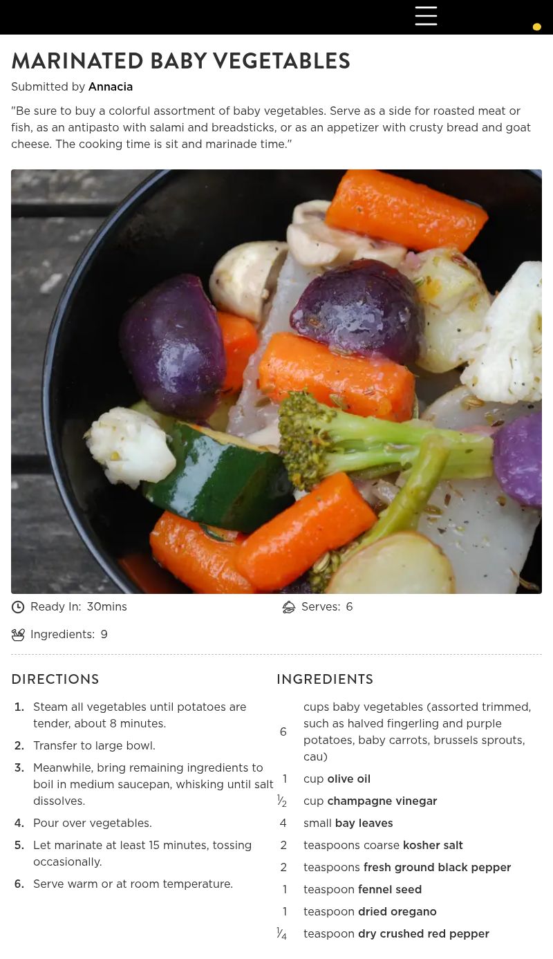 - 6 cups baby vegetables (assorted trimmed, such as halved fingerling and purple potatoes, baby carrots, brussels sprouts, cau)