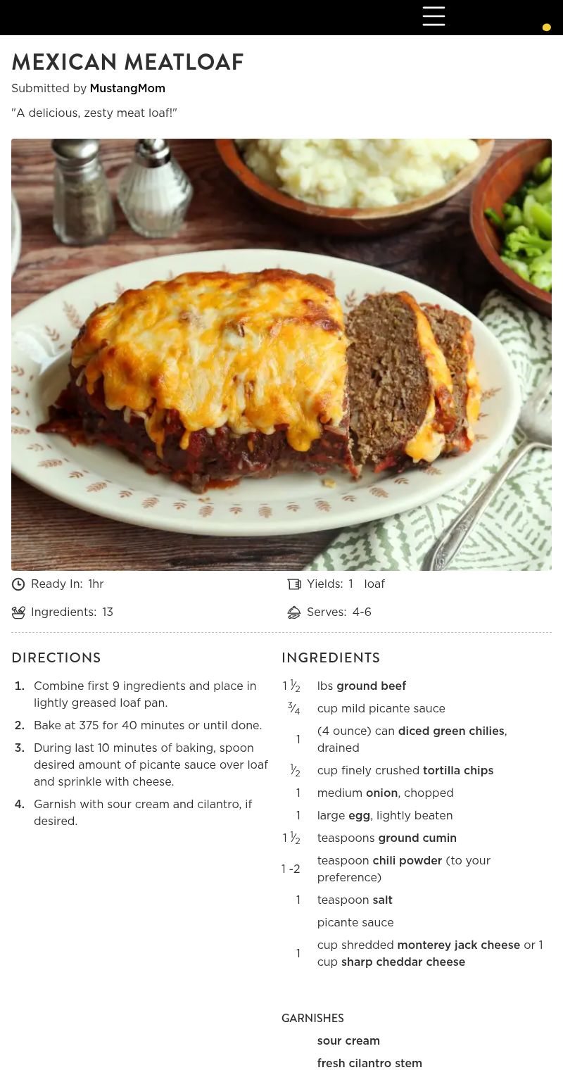 - During last 10 minutes of baking, spoon desired amount of picante sauce over loaf and sprinkle with cheese.