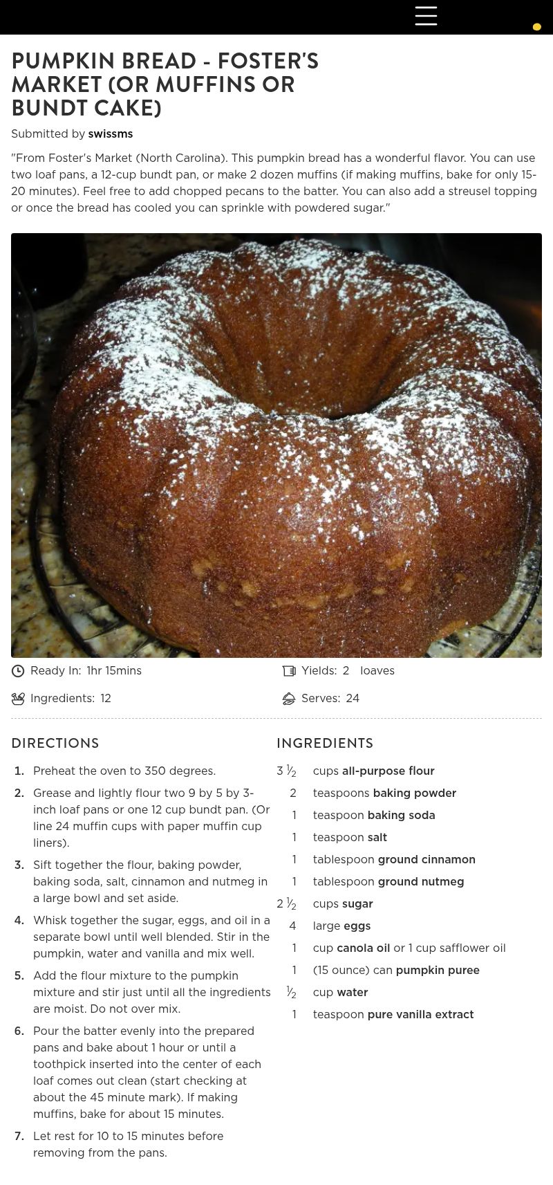 Pumpkin Bread - Foster's Market (Or Muffins or Bundt Cake)