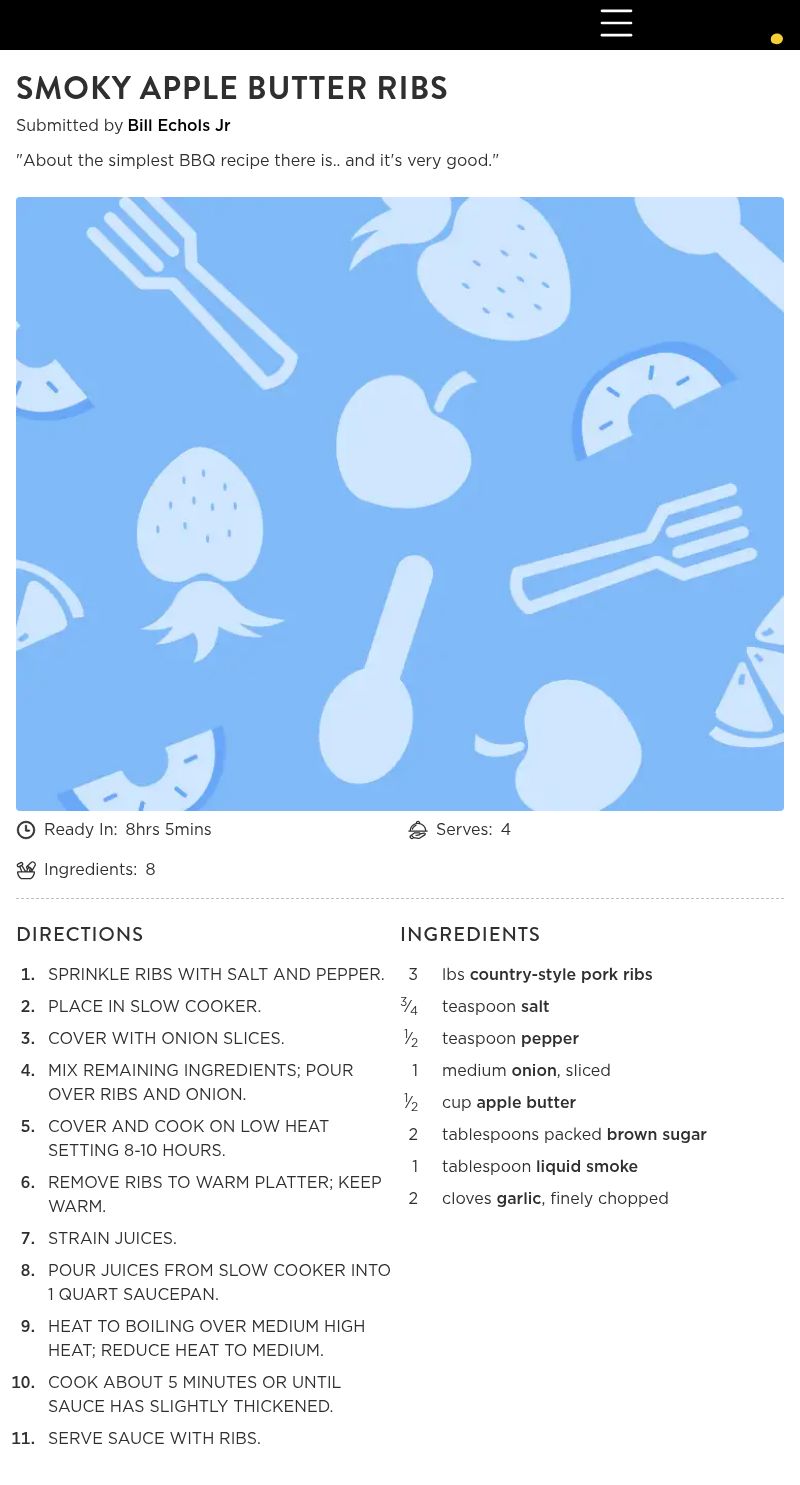 2. I made these yesterday and couldn't wait to get home from to work to test them. The meat was so tender, and the sauce ingredients blended nicely so it was a bit sweet, but you couldn't tell it was apple butter. I also threw in some quartered redskins. I thought I'd have leftovers but my boyfriend finished them up. Will be making these again.