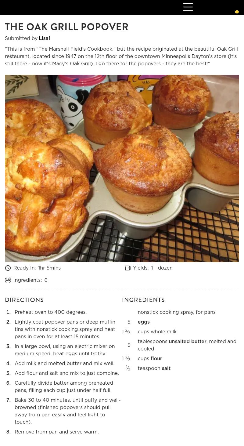 3. The popover picture that you are using is actually a picture of my popovers! I'm flattered. I do love these popovers and was getting the recipe to print. Surprised to see my pic!